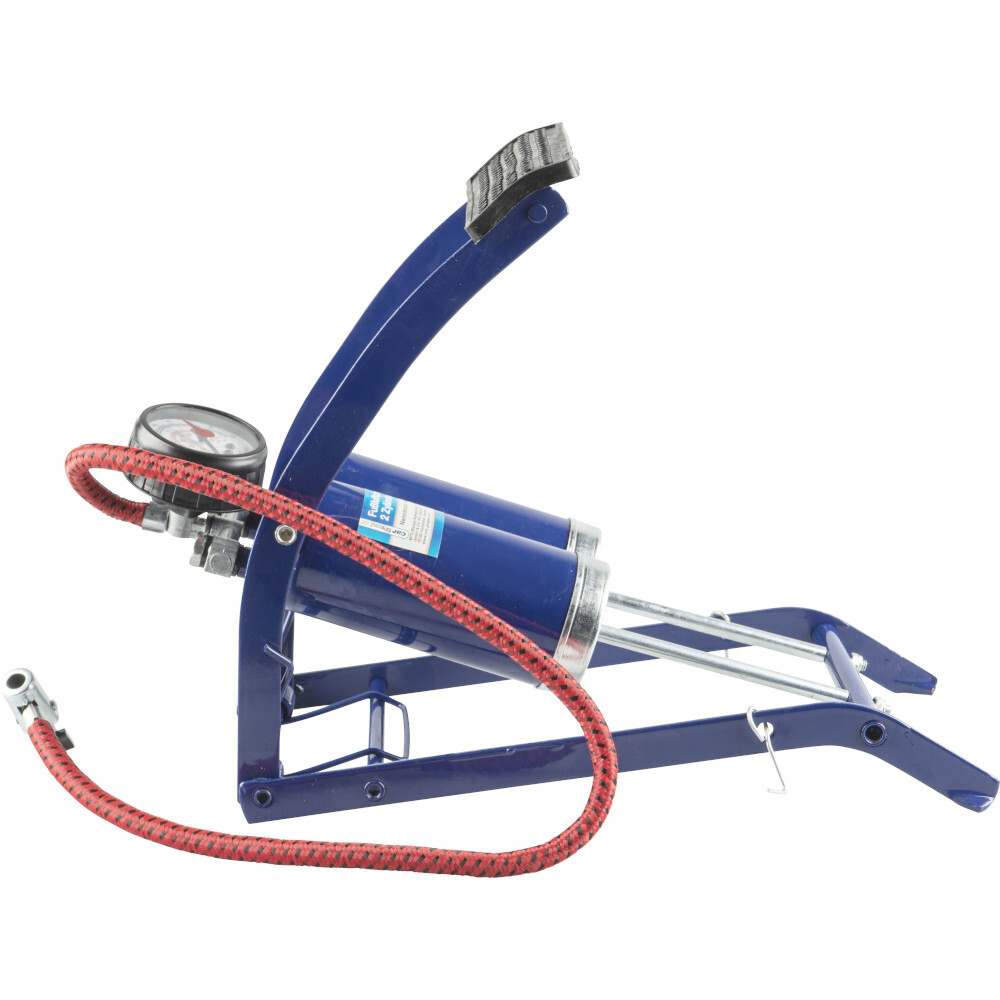 Fußluftpumpe 4 bar mit Doppelzylinder, Manometer und verschiedenen Adapter