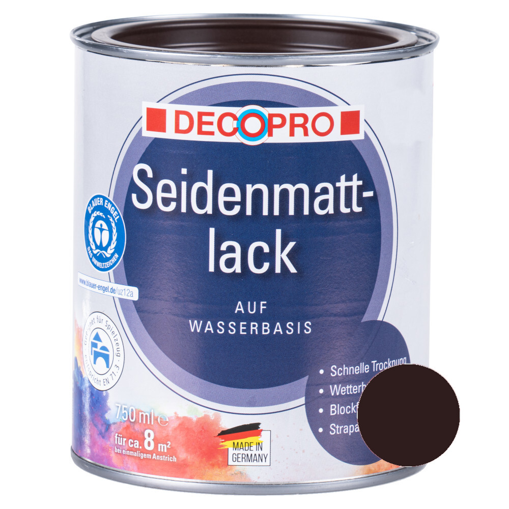 Der DECOPRO Seidenmattlack sorgt für hochwertige Lackierungen im Innen- und Außenbereich. Mit diesem vielseitig einsetzbaren Lack erhält man schützende und hochwertige Anstriche auf grundiertem Holz und Metall, sowie anstrichgeeignete Kunststoffe. Der Acryl-Lack bietet ein sehr gutes Deckvermögen ist strapazierfähig und umweltfreundlich.