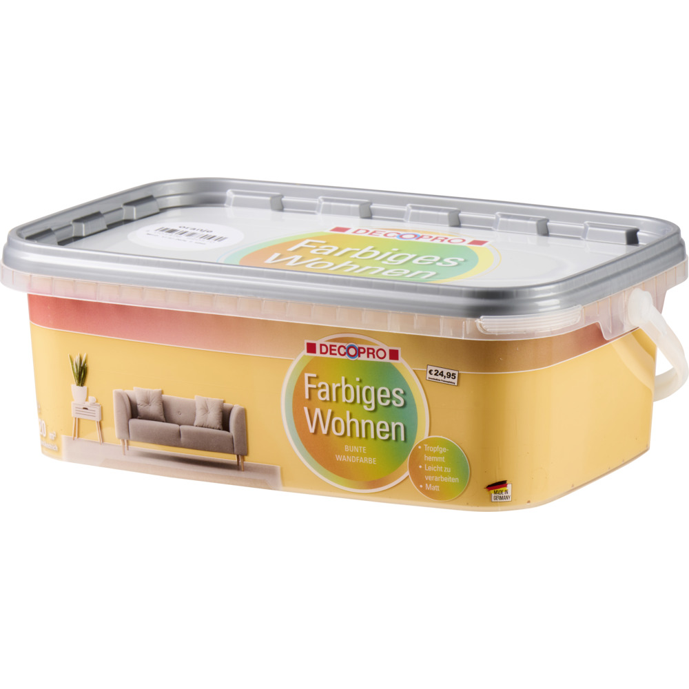 Die Wandfarbe von DECOPRO ist eine fertig abgetönte Innendispersionsfarbe. Geeignet für Neu- und Renovierungsanstriche in allen Wohnräumen. Normal beanspruchte Wand- und Deckenanstriche auf Raufaser- und Strukturtapeten, Papiertapeten, Gipskartonplatten, alte Dispersionsfarben und Kunstharzputze sowie Mauerwerk, Putz und Beton. Diese Wandfarbe wurde mit dem Umweltzeichen "Blauer Engel" ausgezeichnet, sie ist daher emissionsarm. Die einfache Verarbeitung und die hohe Deckkraft wird dich begeistern.