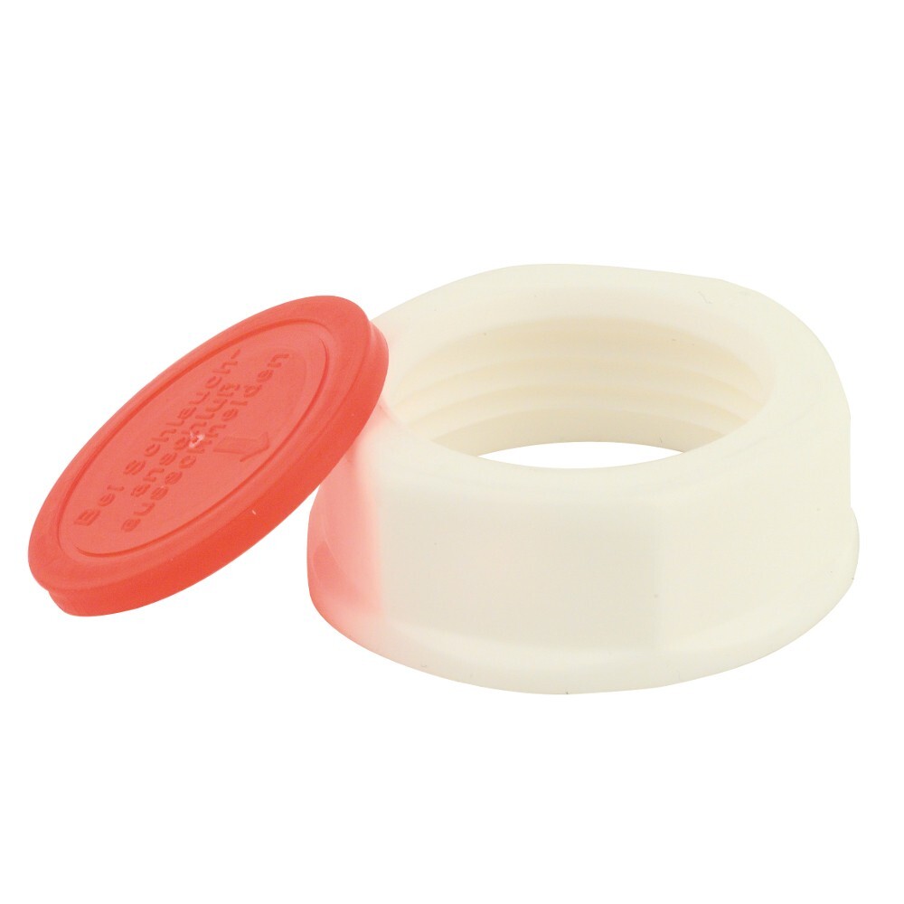 Die Kappe für den Siphon-Geräteanschluss ist die ideale Ergänzung für alle gängigen Spülen-Kunststoff-Siphons. Ihre besondere Konstruktion mit einer innenliegenden Kunststoffscheibe erfüllt nicht nur die Funktion einer effektiven Dichtung, sondern bietet auch vielseitige Anwendungsmöglichkeiten. Bei Bedarf kann der innere Kreis der Kunststoffscheibe ausgeschnitten werden, um die Kappe als Dichtung für einen späteren Schlauchanschluss zu nutzen. Hergestellt aus strapazierfähigem Kunststoff in zeitlosem Weiß, verfügt die Kappe zudem über ein 1" Innengewinde, das eine einfache und sichere Montage gewährleistet.