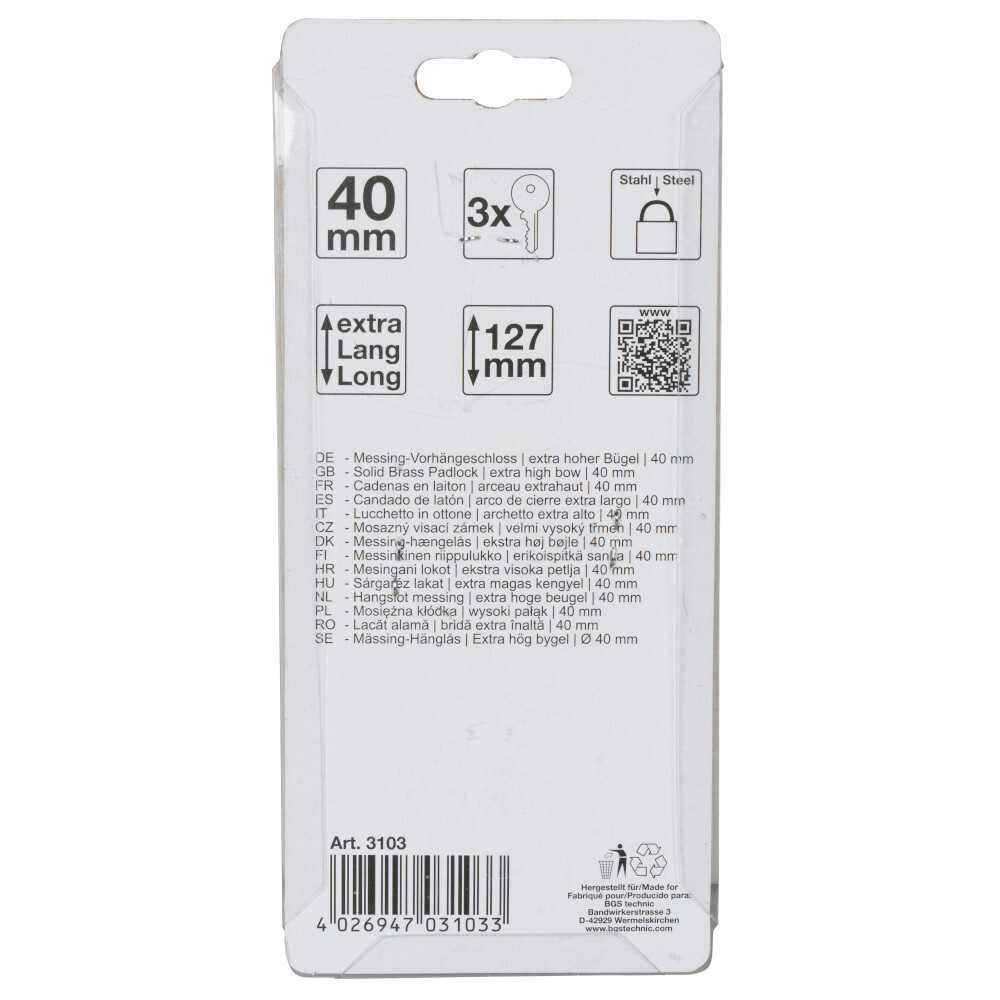 | Schlossbreite (Vorhängeschloss): | 40 mm |