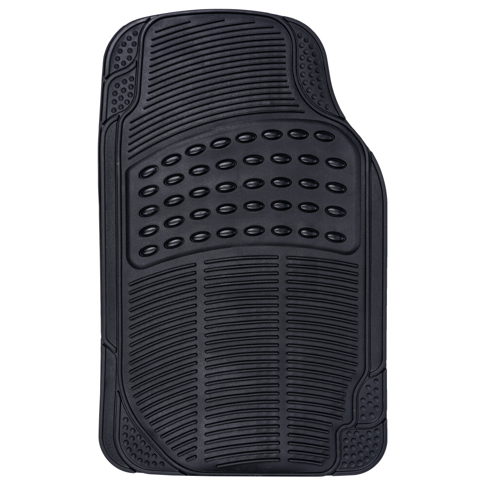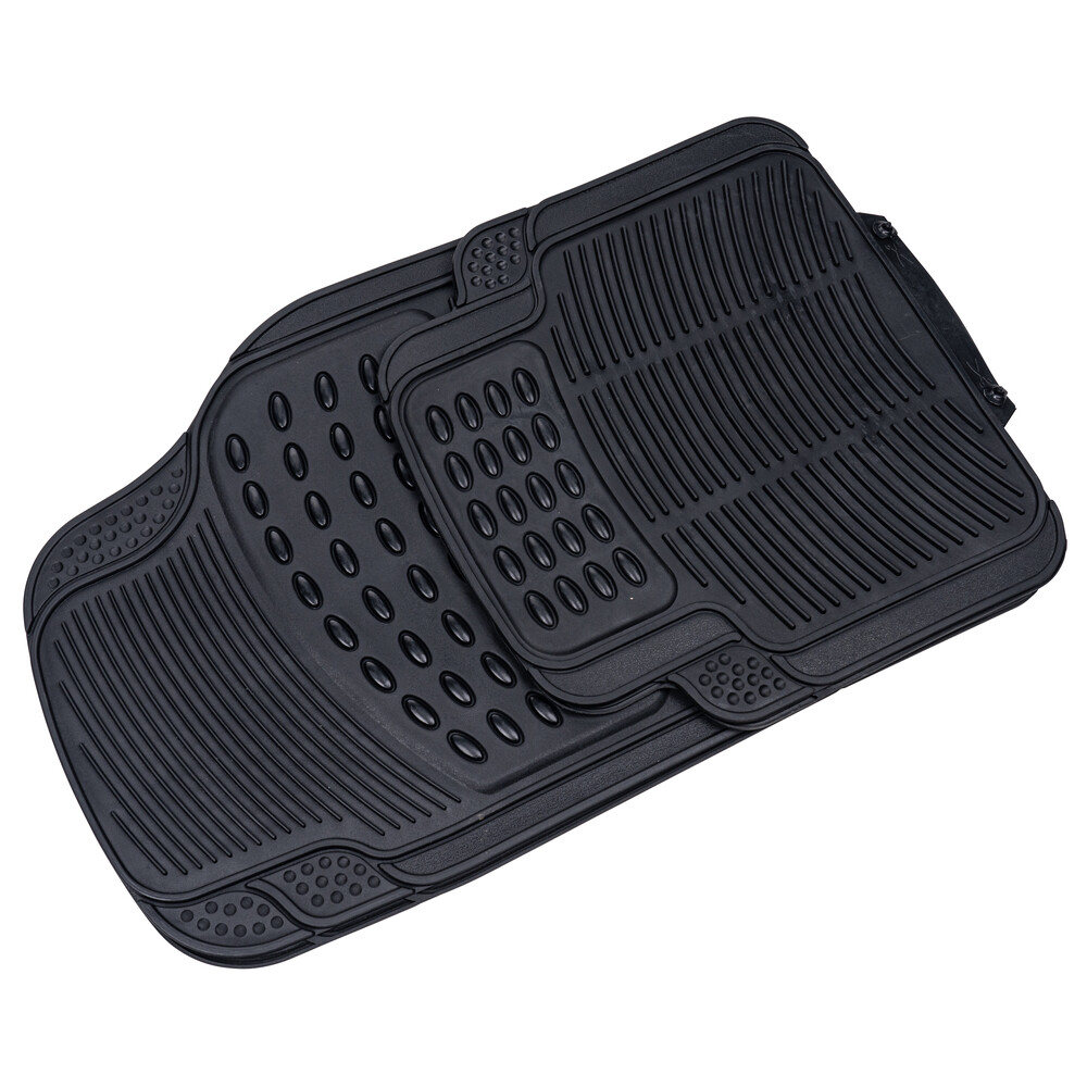 Das universelle Gummimatten-Set Spartakus schützt den Fußraum deines Fahrzeugs vor Schmutz, Schnee und Feuchtigkeit. Dieses Set, bestehend aus 2 vorderen und 2 hinteren Matten, ist aus robustem NBR-Material gefertigt und ist besonders belastbar. Dank den rutschhemmenden Spikes auf der Rückseite der Matten wird ein ungewolltes Verrutschen verhindert und sorgt für optimalen Halt im Fußraum. Je nach Bedarf lässt dich die Passform entsprechend zuschneiden. Somit eignen sich die Fußmatten für alle gängigen Fahrzeuge.